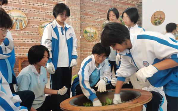 观茶、赏茶、采茶、制茶、品茶……位于玉林市福绵区石和镇塘茂村的玉林市华睿茶业有限公司近日迎来了一批又一批中小学生研学团队,他们从多种感官维度深入认识茶叶。